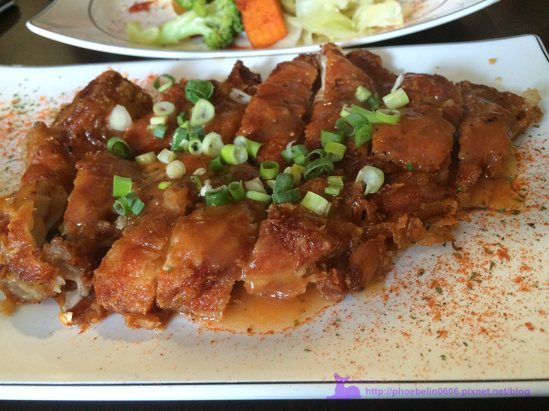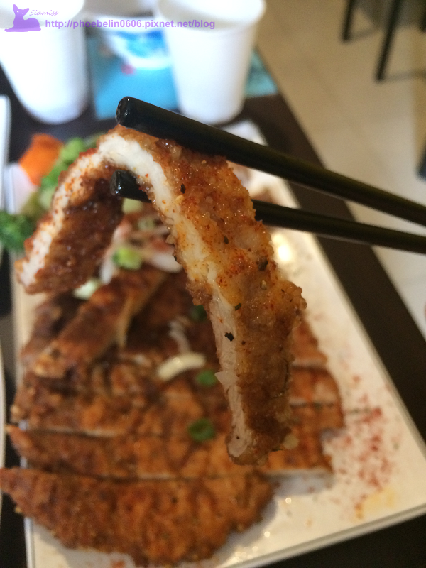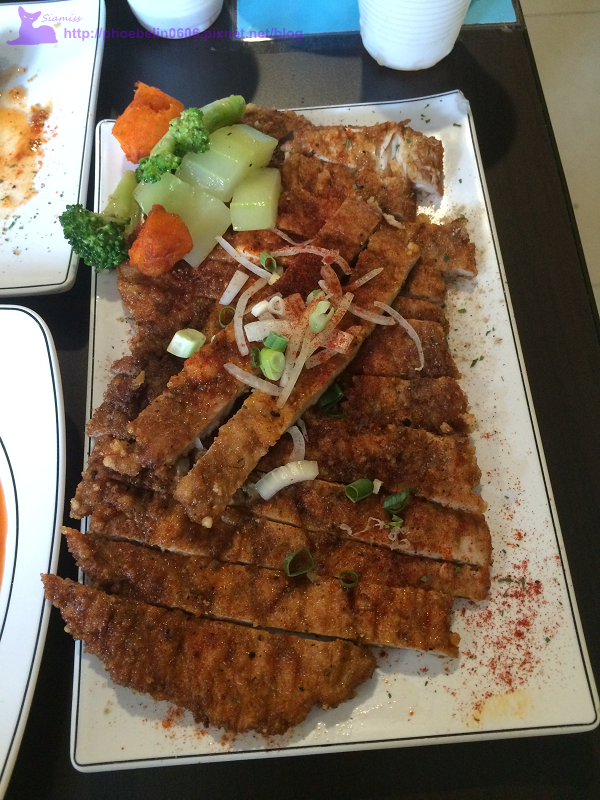 看看這super size的無敵大大豬排,上面灑滿了香料及紅椒粉(不辣)。