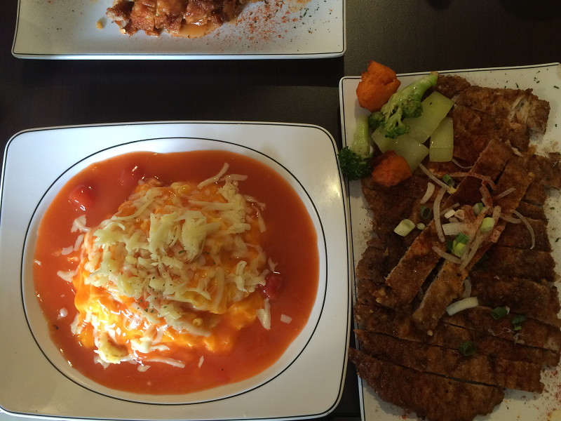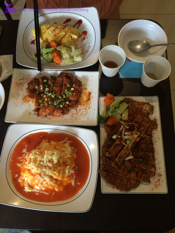 我們今天分別點了特大豬排搭番茄蛋包飯($130)+起士($10)