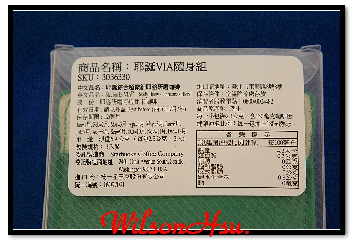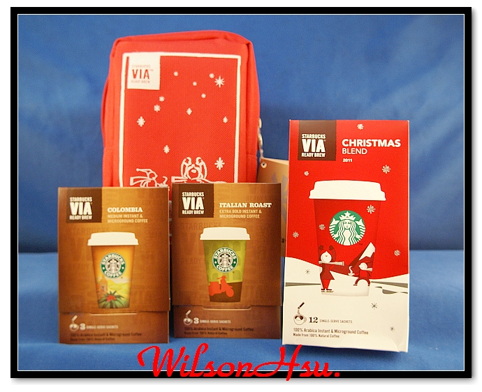 正面,可以看到三包聖誕款的 VIA 咖啡。
