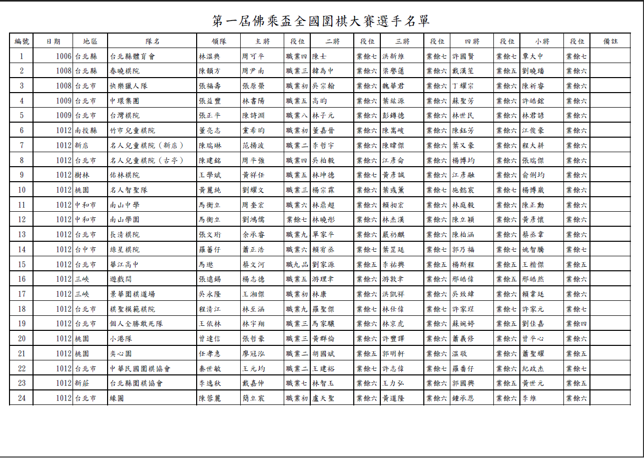 本來第24 隊 除了盧天聖外還要補李天罡,但李要回大陸比賽就放棄了.