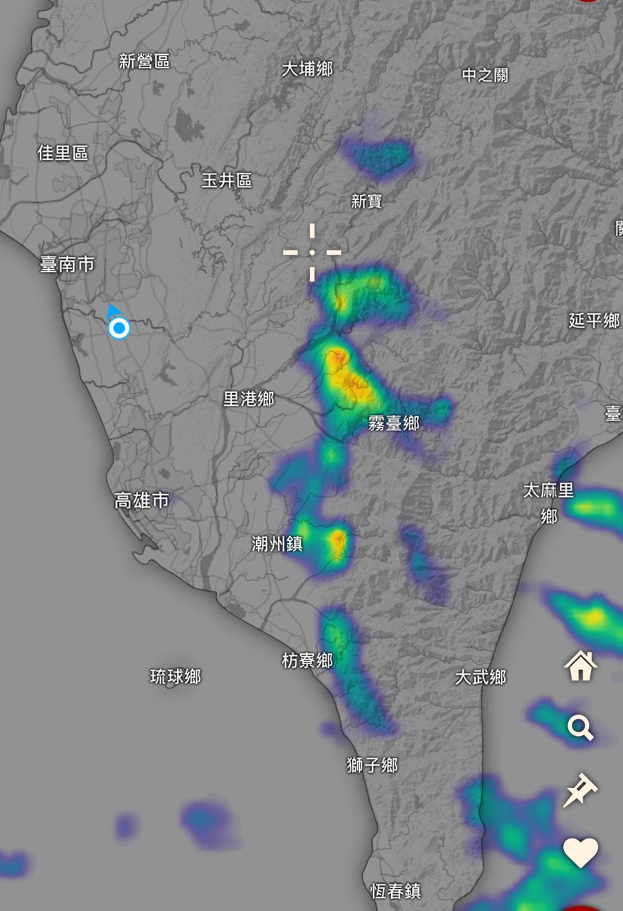 如題,剛剛看了雷達回波圖,看到在屏東山區內陸,也就是內埔潮州高樹,偵測到了午後