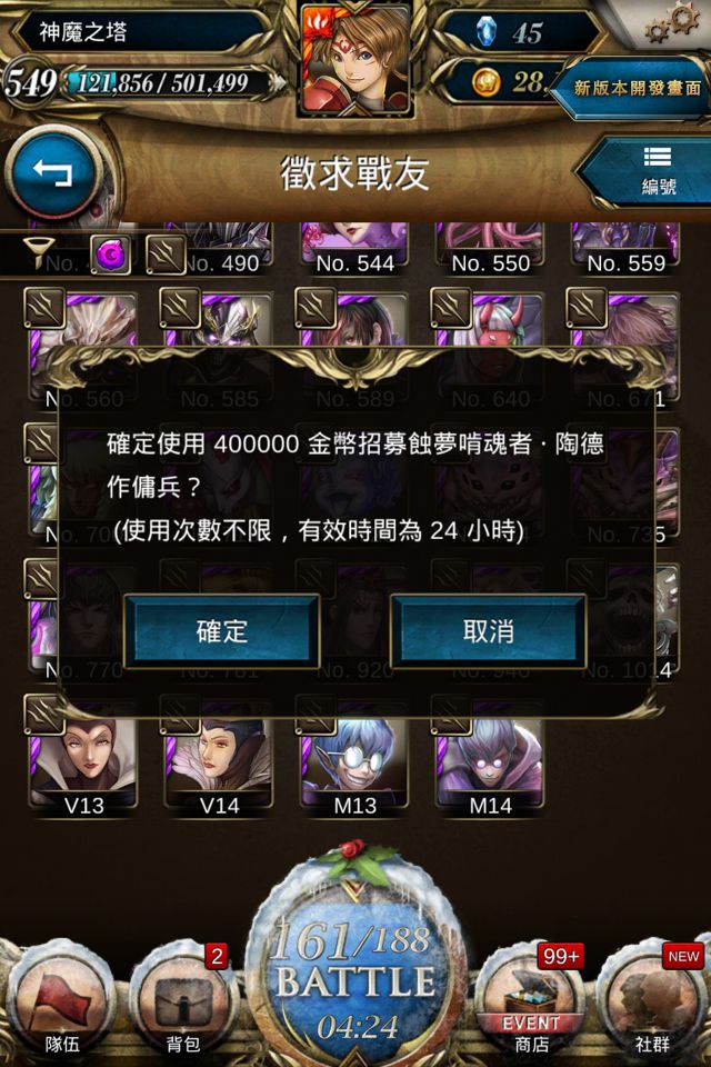 招募的傭兵戰友將能在一天 (24 小時) 內無限次助你挑戰關卡 (不包括「昇華」、