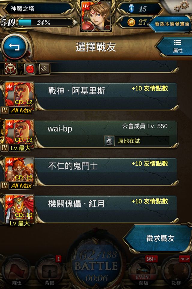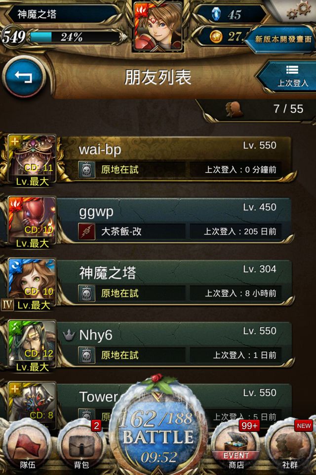 「朋友列表」時不會錯誤刪除,而且友人的條列會變成金黃色,在「選擇戰友」、「排行