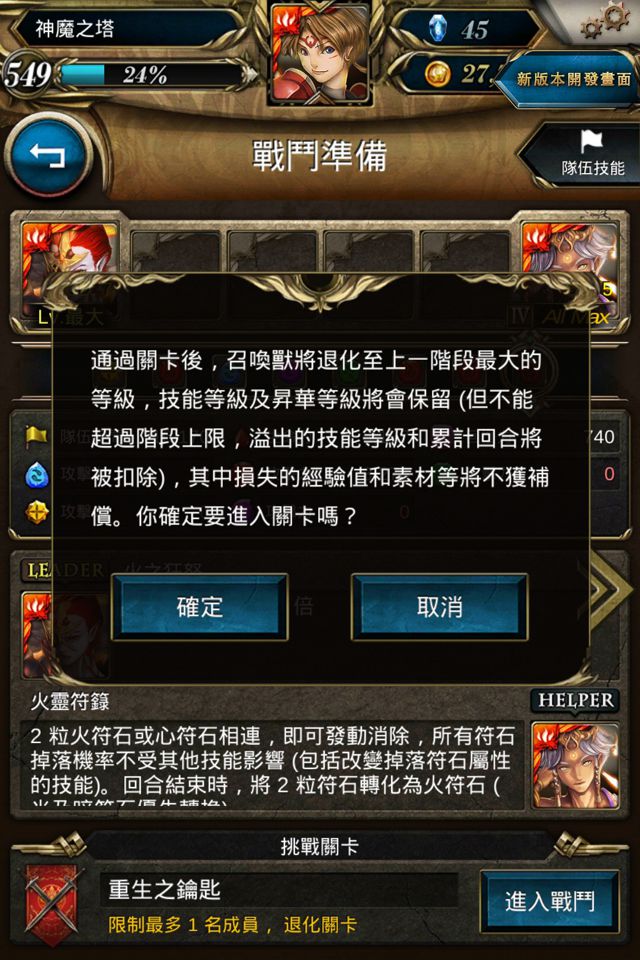 用鑰匙打開試煉關卡,讓魔法石抽卡的角色退回進化前的狀態,在重生中鋪展鍛鍊技能的