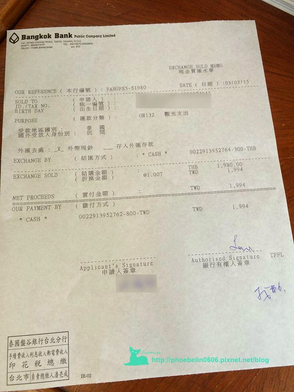 最後實際是台幣1994元換到1980泰銖,找6塊台幣。