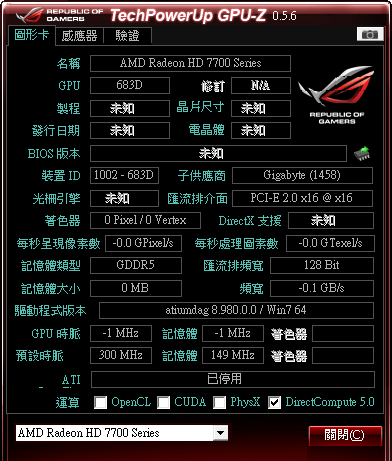 就是不會顯示7770...很多訊息也空白...等一下...GPU-Z有更新...