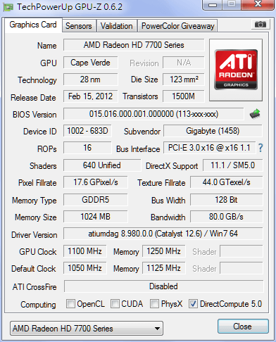 第一次自己買ati的顯卡來用~就買了技嘉的7770 oc1050mhz版