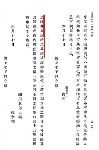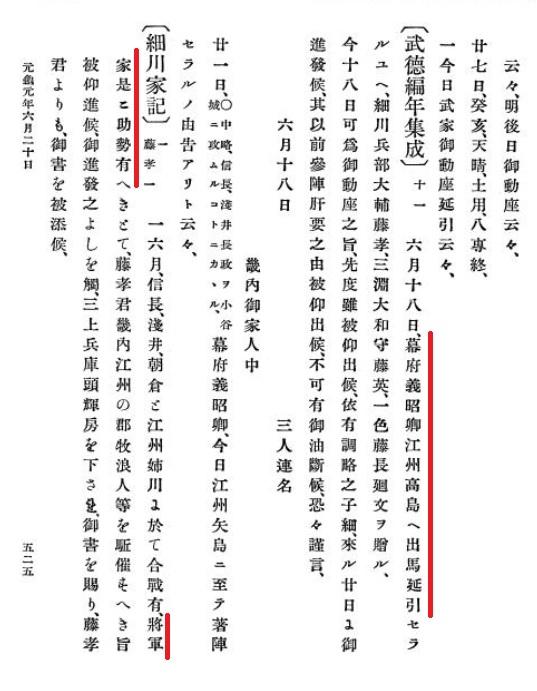 而在『細川家記』中,也紀錄了將軍足利義昭給織田信長「助勢」,並派遣細川藤孝在近