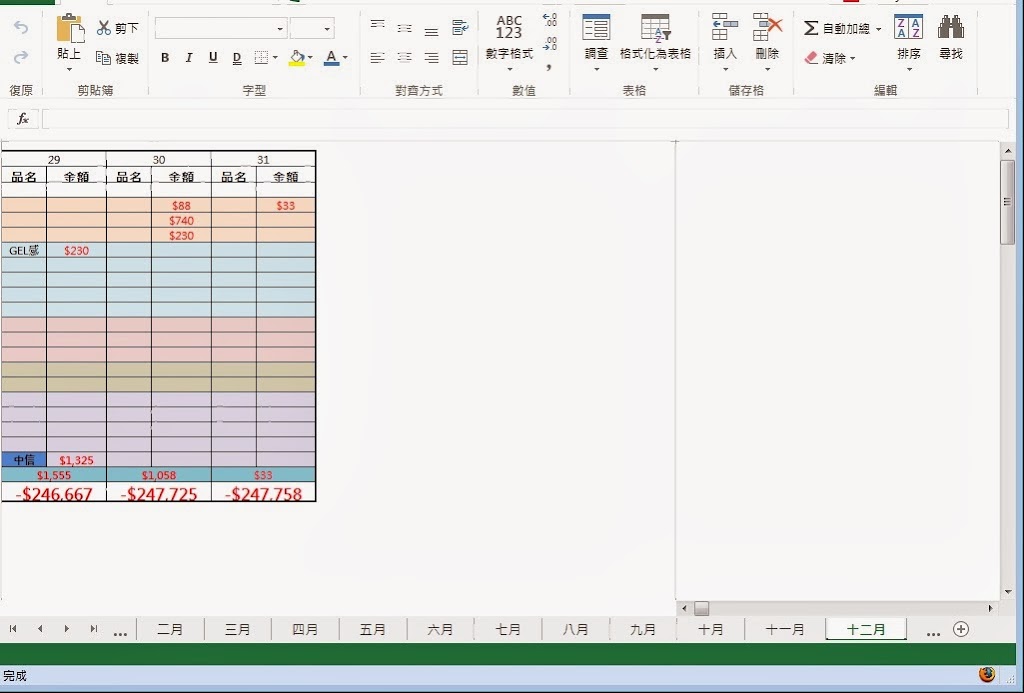 然後我是以月份來分sheet