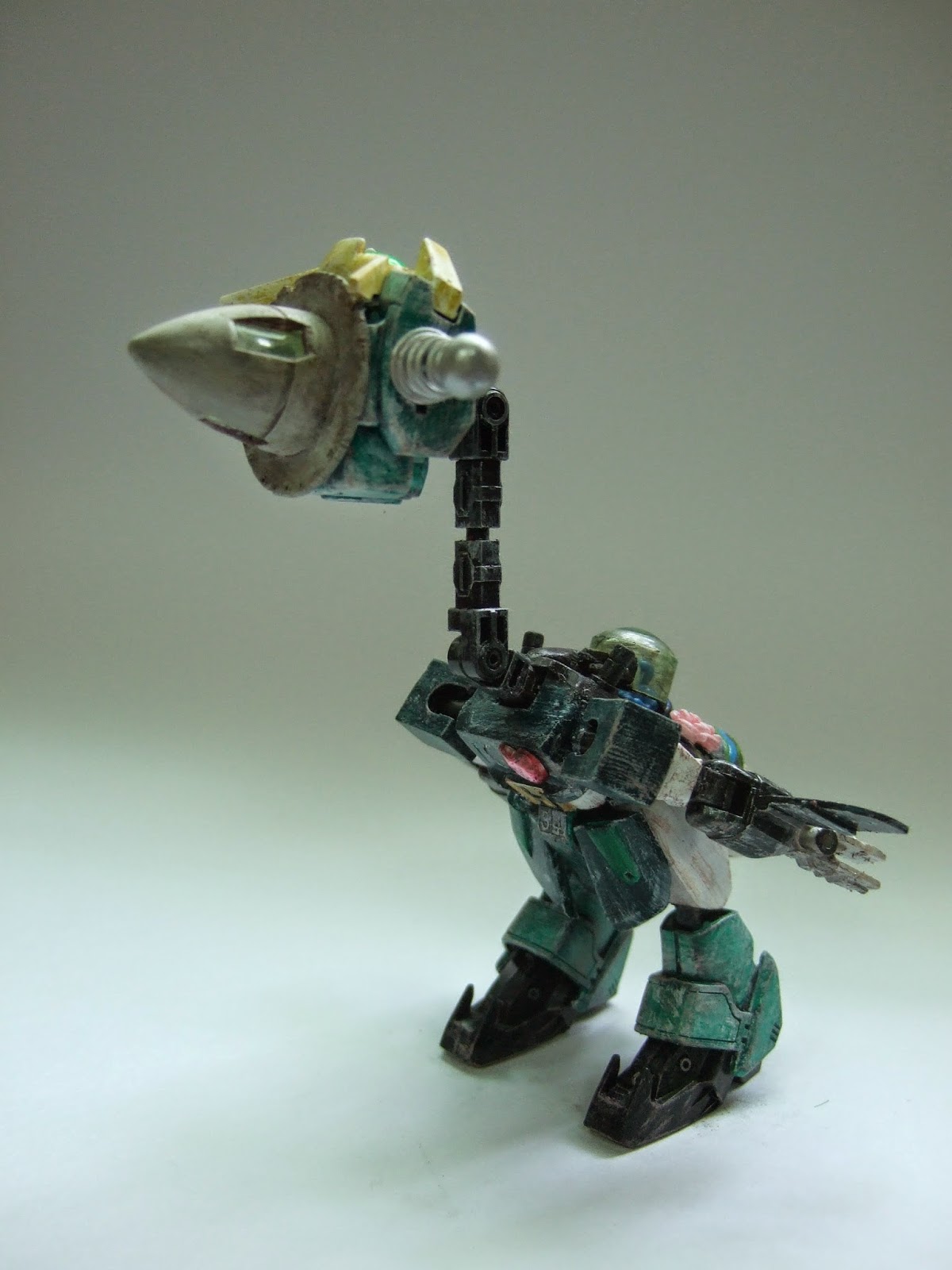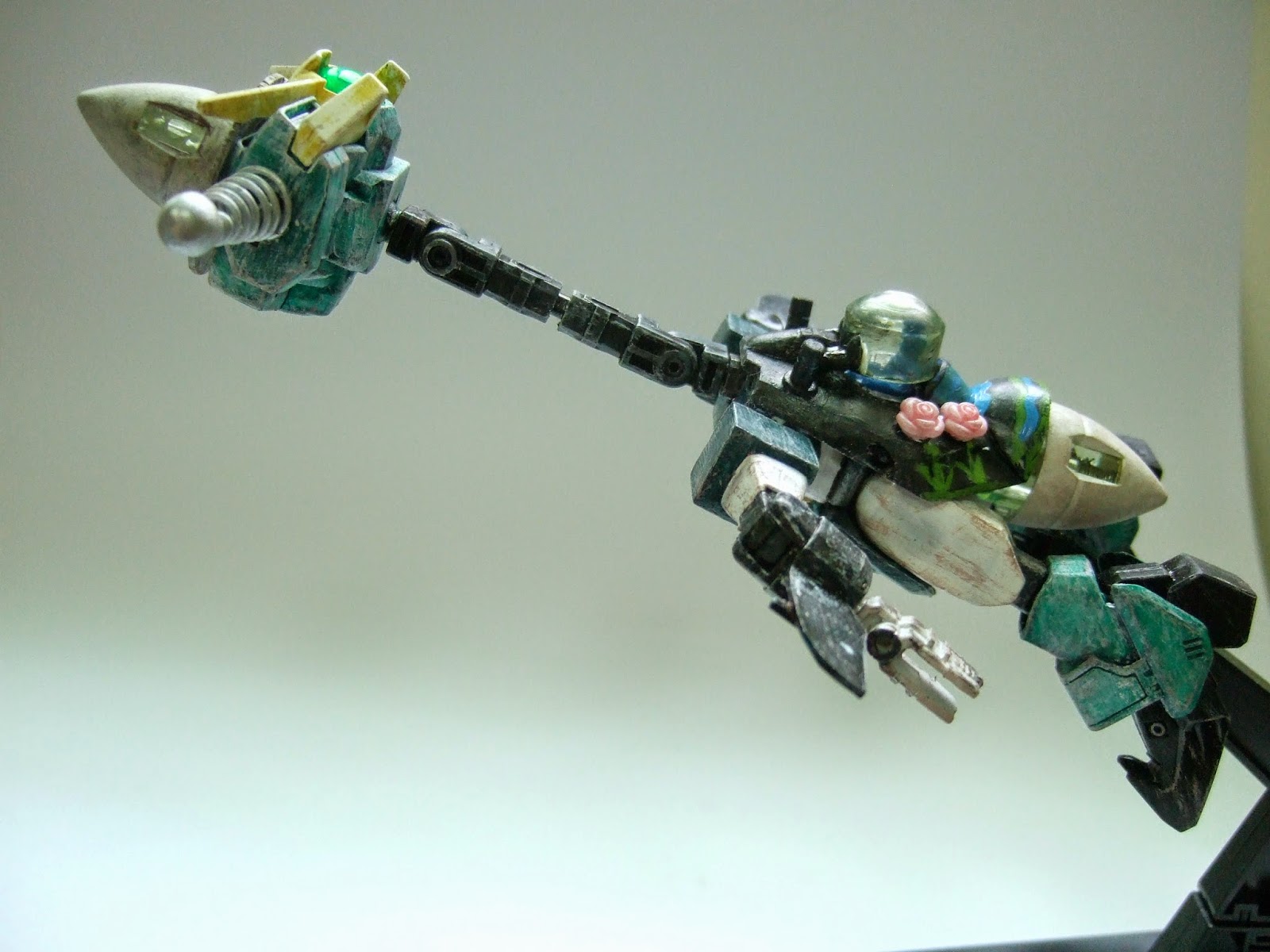 兩邊用鋁線捲出像天線一般,頭戴BB版的GN爐帽子。