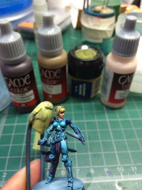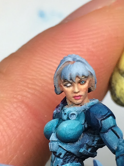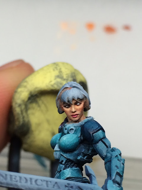 髮頂順下來,最後高光才使用bubonic brown mix Pale flesh與純粹的Pale flesh作最後