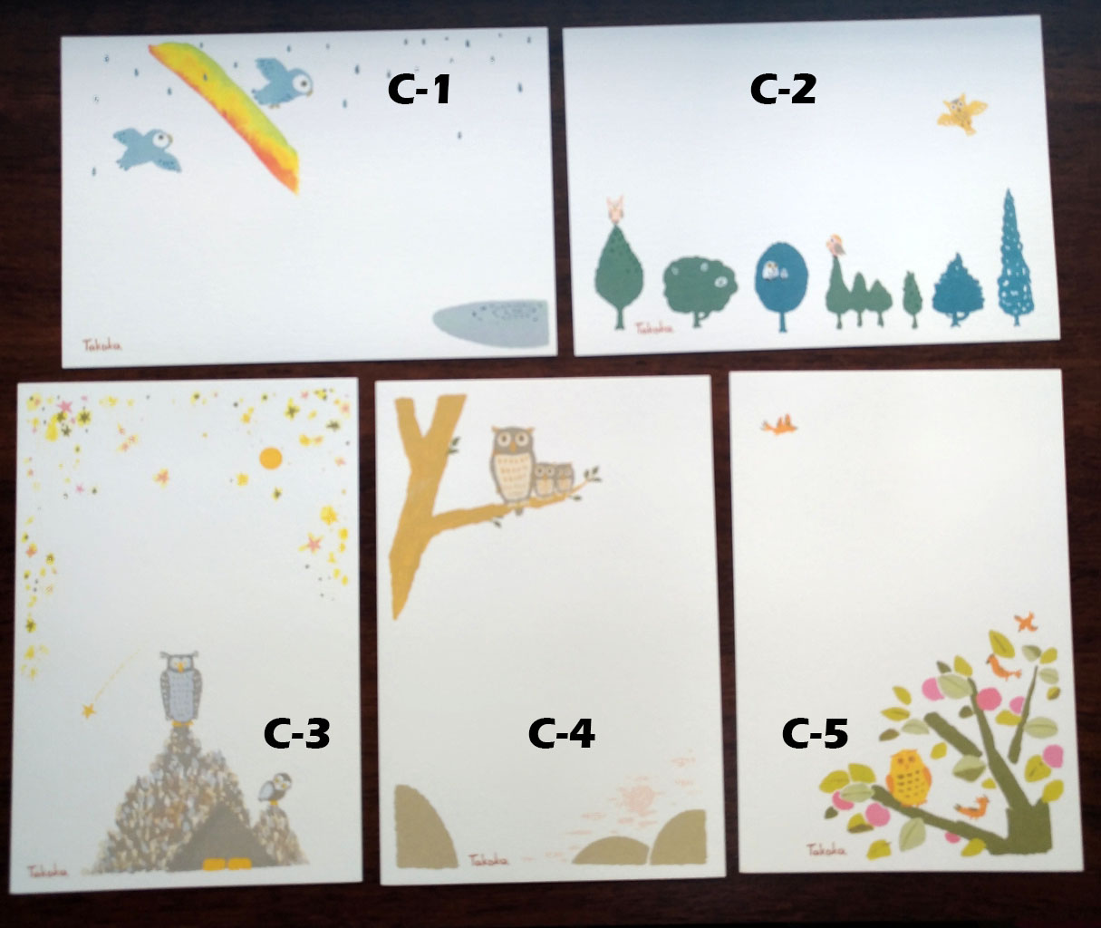 C:貓頭鷹插畫片,日本購入,拍得有點糊QQ 但其實很美,紙的質感也很好