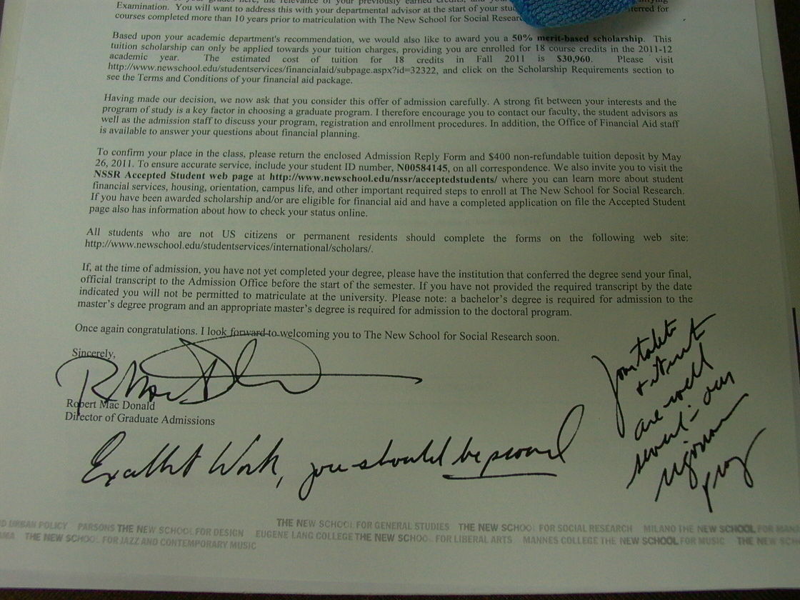 今天收到了New School for Social Research 的admission,