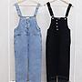 [全新/台北] 女 Yabbi倒三角金屬排釦牛仔吊帶褲