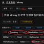 全部HatePolitics128907Gossiping50603movie34448C_Chat20098Japandrama12133PlayStation5937JinYong4689WomenTalk4093Palmar_Drama3075Military3066HK-drama2834joke2292Falcom819HK-movie676EAseries586SET527Koei470TuTsau432PublicIssue381Miaoli337KingdomHuang296HK_Comics280FLAT_CLUB233ONE_PIECE203L_TalkandCha201TW_Entertain193C_ChatBM182Sangokumusou152XBOX148GossipPicket141RealPlaying140Sebastian137NTU130Kaohsiung125SuperHeroes122PublicServan112Baseball105Salary93KS98-30288Militarylife88SouthPark81FuMouDiscuss77Gintama74Suckcomic73Tainan72media-chaos68historia67Buddhism66Marginalman53ComGame-Plan50PttLaw50Sub_GConsole50home-sale49Drama47TKU_EE_92C45FCU_EE97A43gay43STREET_BALL43TigerBlue43KOU42NCCU_TEA42Teacher42HateP_Picket41PH-sea40CLHS-50-1439specialman39JP_Entertain38medstudent38Swccyer38TW-history38Kids_Sucker37PttHistory36Atheism35ChungLi35HCSHch13_31135MenTalk35Weyslii35CrossStrait34Steam33MdnCNhistory32Volunteer32sex31SWORD31NTOU-AQUA9830Warfare30StupidClown29Viator29NARUTO28LTK27Hate26KS87-30926Nolan26Stock26DPP25JetLi25Neihu25NUK_EE100A25WuLing46-31725japanavgirls24Keelung24LoL24PeopleSeries24THU_BA200024WarringState24BBSmovie23Employee23I-Lan23NHK23NTCUST23NTUST_Talk23Taoyuan23Zastrology23Christianity22HSNU_97522KOTDFansClub22NTUGIEE_AMTG22Pisces22SFFamily22StarWars22THULAW22CCRomance21Detective21HsinChuang21CFantasy20CSMU-MED9520f-sexBM20Scenarist20Bank_Service19Daan19FCU_EE97B19JapanMovie19NTUE-CS10219Tech_Job19HardwareSale18NTUCivilism18YOLO18Deserts17L_SecretGard17NCYU_Fst_9917NUK_AC9817TNFSH98th17Boy-Girl16PSP-PSV16Violation16AfterPhD15Chan_Mou15JOJO15kochikame15NCHU_CsHsnu15Paradox15tajen15ChangHua14KMT14L_BoyMeetsGi14mud_sanc14NTUE-DC10314RockMetal14DirectSales13NYUST13TSU13YP85-31213AC_In12car12DC_SALE12Golden-Award12IA12MIS_Gbasket12mobilesales12Nantou12R983220PA12STU12Tyukaitiban12Wine12Gulong11HSNU_82011KS92-31311NCCU05_GIDS11NDHU-His10011NTU-MAGIC11NTUBIME-10211NTUST-ECE11Reporter11SRW11Sucknovels11FORMULA110GHIBLI10NCU97ME-B10NHU_Talk10phys9310balaz9BigBanciao9Bioindustry9ComeHere9customers9KS94-3029KS94-3109medache9TaiwanDrama9ASIA-uni8Aussiekiwi8CCHS-97018CGSH87th_3158CHSH-3198ColinFirth8Confucianism8EarthQuake268EarthQuake438Emergency8FJU-Family8kindness8KS97-3028KSU8sp_teacher8talk8ToS8Tour-Manager8Wanhua8YP85-3108ADS7Beauty7Channel_V7CSMU-D897CSMU-Talk7Dota_Legend7feminine_sex7LamiGirls7NTHU_IIS7pts7RakutenGirls7Viator94Ding7Ang_Lee6ASHS-93-li6ck61st3126CMWang6dlsh-7th-3036HomeTeach6HsinTien6JapanHistory6Lawyer6MIT6NCKU_CSIE936NSwitch6NTUT_IPET4956pesoftball6ServiceInfo6Shu-Lin6ShuangHe6SKET_DANCE6SongShan6Statistics6studyteacher6Taitung6watch6Yunlin6ASHS-95RN5AT_Badminton5Biology5BROADWAY5Cga5CTS5CultureShock5gallantry5HCKuo5HLHS_58th3105J-PopStation5Jacky_Woo5KEN_DOW5LadyGaga5MAC5NCKU5NKUTEE5NTHU-MSE-SB5NTOU_TALK5NTUOCGeo5Poker5TA_AN5TTU-AFL5WarCraft5XiangSheng5About_Life4BAHAMUT4biker4CKCFC_7th4CPU_7714CS_Volley4CYSH97Y3184DeathNote4Dicky4Disabled4DJ_fightman4Doraemon4DragonBall4Emulator4GreenParty4HSNU_10954Hunter4ItohMisaki4JeffLau4KIDs4KS97-3134L_PTTAvenue4LinKou4Madonna4MCJH_M_084Nangang4NCCU08_Ethno4NCKU_EARTH984NUU_Talk4Old-Games4pighead4Post4rent-exp4SAN-YanYi4STUST4SW_Job4TCFSHvolley4Tokusatsu4TuCheng4WHS-8th3014AU_Talk3Ayu3book3Buddha3Canada3chu-cs90a3ck-talk3ck55th3203CSMU-HSA963CVS3EEBadminton3emprisenovel3Fantasy3FEU3FJU3FSHS-95-3083GambleGhost3HatePicket3HCHS603123HOCC3HSNU_10083HSNU_10633HSNU_11253HSNU_9763JPliterature3kawaii3kenichi3KimBeom3KS96-3143KS96-3183L_TaiwanPlaz3LoveLive3Magic_Power3NCCU3NCHU-FS1003NCHU-Stat973NCNUEM3nCoV20193NKFUST-CCE903NTTU_CSIE993NTUE-CS983NTUT_ME495A3NYUST99_FING3PHAT-MEN3San-Ying3Shokotan3Singapore3sinica3stardust3Stephen3Sunrise3Taipei3TaiShan3tennis_life3TFSHS64th3093TKU_S92BIO3toberich3TTSH12th3093VictoryYouth3W-Philosophy3youtuber3Yuriko3YUYUHAKUSHO3Zombie3AaronKwok2allergy2AndyLau2AOE2AOSO_Lab2ApexLegends2AyaseHaruka2b_class2BattleRoyale2bicycle-tour2boxoffice2cat2Catholic2CCSH_88_3042China-Drama2Chord2CHSH_98_3202ck51st3282ck57th3282CMU_CM43A2CoCo2Coffee2Conan2Cross_Life2CSMU-CM-OP2CTSH97EXP2CTV2DIABLO2Disney2DonnieYen2DragonQuest2DYU2Eason2Economics2Elva2Fann_Wong2fastfood2FCU_Talk2FiremanLife2FJU-ACC90a2Fortune2Galaxy2GTA2GTO2GuessX32HarukiMuraka2HCU2HeluoGame2Horror2Hsinchu2HSNU_11102HSNU_11352HSNU_8752HSNU_9792HSNU_9892Insurance2Jay2JohnnysJr2Kindaichi_Q2KingofPop2kodomo2KoreaStar2KS91-3192KS92-3062KS95-3142KS95-3162KS95-3182KS96-3012KS96-3122KS97-3202KS_PMAC2Learn_Buddha2lesbian2MartialArts2marvel2MCU_Talk2mknoheya2movie_Picket2Mudran2NCCU06_HISTO2NCCU07_Eco2NCCU08_Eng2NCHUS2NCUECON962NDHU-MBA952NHLUE-EED9512Nintendo2NSYSU-Chem992NSYSU_EE95-12NTHU_pingpon2NTHUMathG2NTPU-CSIE962NTPU-STAT952NtuDormM82NUU_IM2Ourmovies2pal2PCSH91_3052Physics2politics2PttEarnMoney2PUBG2RIPE_gender2Road2ScienceNote2SENIORHIGH2share2ShidaMirai2SMAP2soul2SSSH-16th3132Superman2swim2TAKESHI2Tea2TKU-Strategy2TPC_Police2TV-Champion2Vivian2WomanShow2WuGu-BaLi2Xien2YP97-3132YUGIOH2YZU_CN99A2AACK1AboutBoards1AC_Sale1Aerobics1Android1aoiXaoi1ArakawaCow1army_53-2T1ASHS-94sin1AskBoard1B943022XX1B97A013XX1Baki1BaseballXXXX1Billiard1BioHazard1Bus1C_BOO1C_Question1Car-rent1CCSH_86_3121CCSH_89_3171CCU_EE961CCU_Telcom001Chen-Hsing1chess1ChthoniC1ck46th3311ck57th3141CK59th1221ck62nd3141ckbc1cksh78th201cksh83rd3031cksh84th3021cksh84th3031cksh84th3121cksh85th3011CKSHTalk1Claire1Clarify1CMU_Guitar421CNU1ComeCome1Comic1cosplay1couple1CPU_BP7711creditcard1Cross_talk1Crowd1CSMU-D981CSMU-HSA971CSMU-LS891CSMU-MED971CSMU-Psy1CT24th3371CTSH953031CYCU_MIS_93A1CYCU_Talk1CYCUEL95A1CYUT1DavidTao1DTJH_3221Ecophilia1Education1Eita1EuropeTravel1Evangelion1Examination1EYESHIELD211Family1FATE_GO1FCU-STAT-941FCU_ACCSFB1FCU_ECON_93B1Fei-Huang1Feminism1Fencing1FHB-TEAM1Finance1FJU-ACCR941FJU-EE-2004A1FJU-EE-2004B1FJU-EE-2006B1FJU_AD-041FJU_JCS111FJU_N96b1Folklore1Fooyin1FTV1Fund1Hamster1HarryPotter1Haruhi1HCHS923131Hearthstone1Hey_Say_JUMP1Hiking1HLHS_10thU1HSNU_10661HSNU_10911HSNU_11151HSNU_11171HSNU_11241HSNU_11721HSNU_9481Hualien1hwhEE_592B1HY-40-Xin1ID_Multi1IkutaToma